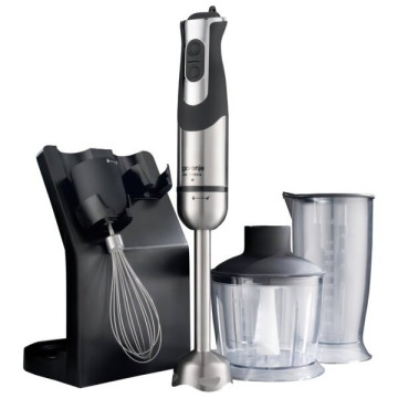 У комплекті набір, що складається з декількох насадок з підставкою для їх зручного зберігання. Блендер призначений для збивання, подрібнення та змішування різних продуктів: овочів, фруктів, зелені, горіхів, грибів та ін. Блендер незамінний при приготуванні дитячого харчування, він швидко приготує соус, зіб'є яйця, змішає смузі або пюре.