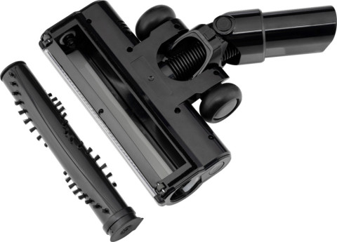 Технологічно досконала турбощітка має дуже широкий валик для кращого всмоктування. М'які накладки та бампери дбайливо ставляться до дерев'яної підлоги та меблів. Знімний валик одним натисканням кнопки дає змогу швидко та легко видалити довге волосся та інші забруднення.