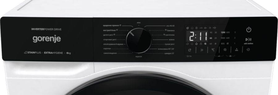 За допомогою функції AddClothes можна легко призупинити цикл прання на початкових етапах і додати або вийняти білизну.