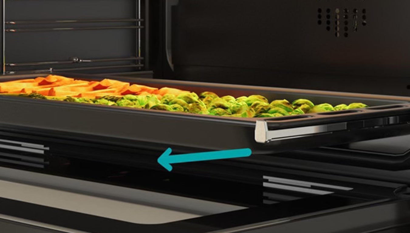 Телескопічні напрямні дозволяють легко та безпечно висувати деко, забезпечуючи комфортний контроль процесу приготування. Також вони значно полегшують очищення.